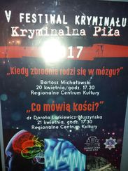 W Pile trwa V Festiwal Kryminału KRYMINALNA PIŁA, członkowie Koła Miłośników Kultury wraz z opiekunką p. Ewą Semanicką wybrali się na intrygujące spotkanie, w ramach trwającego festiwalu, zatytułowane „Co mówią kości?" Zajęcia prowadziła dr Dorota Lorkiewicz-Muszyńska, antropolog sądowy, adiunkt w Katedrze i Zakładzie Medycyny Sądowej Uniwersytetu Medycznego w Poznaniu. Prowadząca zilustrowała swój wykład zdjęciami materiałów badawczych, począwszy od szczątków pochodzących ze średniowiecza poprzez kości z czasów II wojny światowej aż do szczątków ludzkich z czasów teraźniejszych.