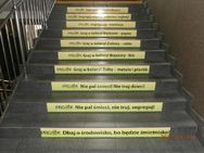 Na schodach znalazły się hasła, które wymyślili uczestnicy Marszu Antysmogowego, wśród których byli także uczniowie naszej szkoły.