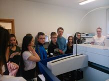 7 marca grupka uczniów z klasy I G, H i J, pod opieką p. Piekarskiej, wybrała się do laboratorium w Ars Medicalu. W głównym holu przywitała nas p. Julita Tessmer, a następnie udzieliła nam kilku wskazówek jak należy zachować się w laboratorium oraz jak ważna jest właściwa dezynfekcja rąk przed i po wejściu do laboratorium. Każdy uczeń otrzymał ulotkę informacyjną i próbował dokładnie oczyścić dłonie wg kolejnych punktów schematu. Następnie już w samym laboratorium przywitała nas kierownik diagnostyki laboratoryjnej, która oprowadziła po kolejnych stanowiskach pracy. Pracownicy opowiadali nam o specyfice badań tam prowadzonych np. dowiedzieliśmy się, co się dzieje z próbką krwi pobraną od pacjenta: jak krew jest odwirowywana z czynników krzepnięcia i poddawana dalszym badaniom diagnostycznym w kierunku morfologii lub biochemii. Pani kierownik opowiedziała nam o sposobach identyfikacji chorób bakteryjnych i grzybiczych, pokazując przy tym materiał wyhodowany na specjalnych pożywkach. Uczniowie mogli również zobaczyć mikrobiologiczny materiał w powiększeniu, czyli pod mikroskopem i to chyba wywarło na nich największe wrażenie.