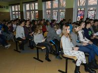 Dnia 14 grudnia 2016 r. w naszej szkole uczniowie klasy Ie pod kierunkiem pani Marzeny Koźmińskiej i pani Katarzyny Kazały przygotowali uroczystość poświęconą tradycjom wigilijnym. Na gitarze przygrywał pan Sławomir Graczyk. Uczestnikami tego wydarzenia byli uczniowie z klas: 1b, 1f, 1c i 2f, ich opiekunowie oraz pani wicedyrektor Ewa Kluge.