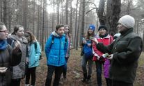 25 listopada 2016r. grupa gimnazjalistów z klas II g i I d, wraz opiekunkami pp. Joanną Ficerman i Bogumiłą Bumbul, udała się do lasu, aby z bliska przyjrzeć się przygotowaniom leśnej zwierzyny do zimy. Po długiej, pieszej wędrówce, uczniowie dotarli do leśniczówki w Stobnie, gdzie czekała na nich pracownica Nadleśnictwa Zdrojowa Góra, p. Anna Kałka, która opowiedziała młodzieży o zimowych zwyczajach zwierząt. W drodze do paśnika, z bliska obejrzeliśmy żeremia bobrowe i dowiedzieliśmy się o żywieniowych obyczajach tych ciekawych ssaków. Sporo usłyszeliśmy o zwyczajach i upodobaniach innych zwierząt żyjących na terenie nadleśnictwa – łosi, saren, jeleni, dzików i wilków. Znaleźliśmy tropy pozostawione przez lisy i sarny.