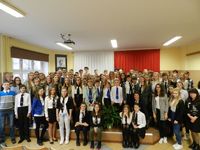 Było ciekawie, wzruszająco i mądrze. Kwiaty i gratulacje na ręce wybitnej zawodniczki złożyli: w imieniu Rady Miasta – przewodniczący Rafał Zdzierela, w imieniu Prezydenta Miasta Piły – Pełnomocnik Prezydenta ds. Rodziny Marian Martenka, w imieniu społeczności Gimnazjum nr 5 – dyrektor Szymon Frydrych, który wręczył także Pani Natalii na pamiątkę spotkania Srebrną Tarczę uzyskiwaną w naszej szkole przez najlepszych uczniów. W spotkaniu uczestniczyły również panie wicedyrektorki – Ewa Kluge i Barbara Ochocka.